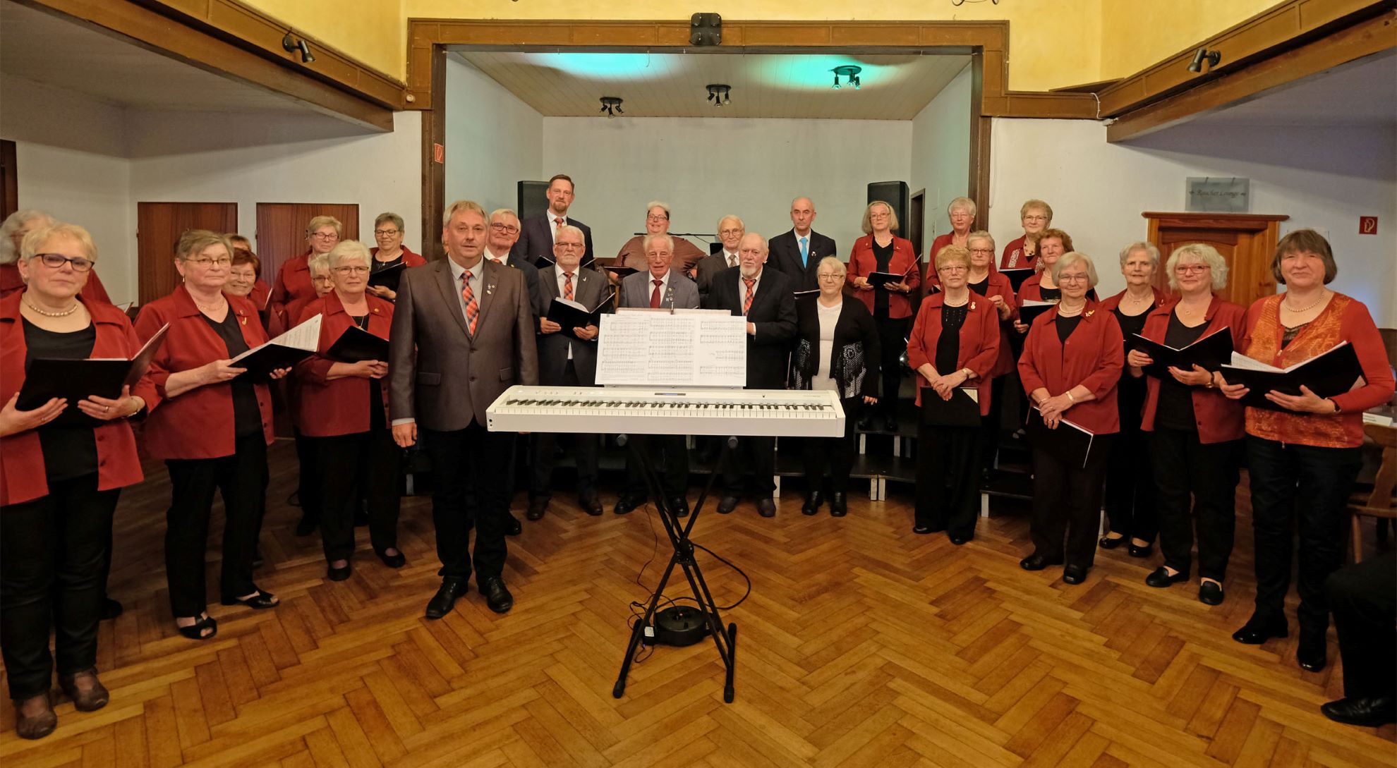 Unser Chor war am 18. Mai 2019 zum Frühlingsfest des mit uns seit der Gründungszeit befreundeten Männcherchores "Frohsinn Westerende" eingeladen. Auch hier kam wieder einmal unser neues Elektro-Piano zum Einsatz, welches wir seit Oktober letzten Jahres unser eigen nennen dürfen. Zu verdanken haben wir diesen glücklichen Umstand der Windkraft Ihlow Stiftung, welche Projekte von Vereinen in der Gemeinde Ihlow fördert. So wurden auch die Kosten für dieses hochwertige Instrument zum größten Teil von der Stiftung übernommen. Hierüber freuen sich Chor und Chorleiter. Unseren Liedvorträgen, bei welchen eine Instrumentalbegleitung vorgesehen ist, wird durch das Instrument ein noch besserer Klang verliehen, und Heere Wurpts wird seine Arbeit als Chorleiter sehr erleichtert.
